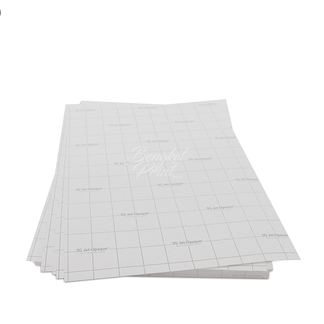 3G Jet-Opaque adalah adalah produk terbaru transfer paper untuk printer inkjet, hasilnya lebih halus dan lebih menyatu pada kain dibanding transfer paper merk lain yang ada dipasaran,transfer paper ini dapat diprint dengan printer desktop / inkjet berbasiskan tinta pigment ataupun dengan tinta Eco-Solvent, tinta lebih cepat mengering dan meresap dengan kuat pada transfer paper sehingga mengurangi resiko luntur.