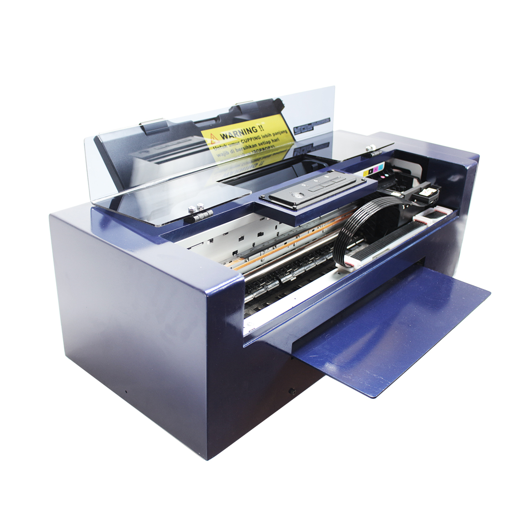 Printer RDP Mini Ecosolvent menggunakan basic printer EPSON L1800 adalah printer yang dibekali dengan sistem ink tank tinta 4 warna saja. Printer ini mampu mencetak kertas / dokumen dengan lebar A3+ dengan kualitas yang sangat luar biasa.